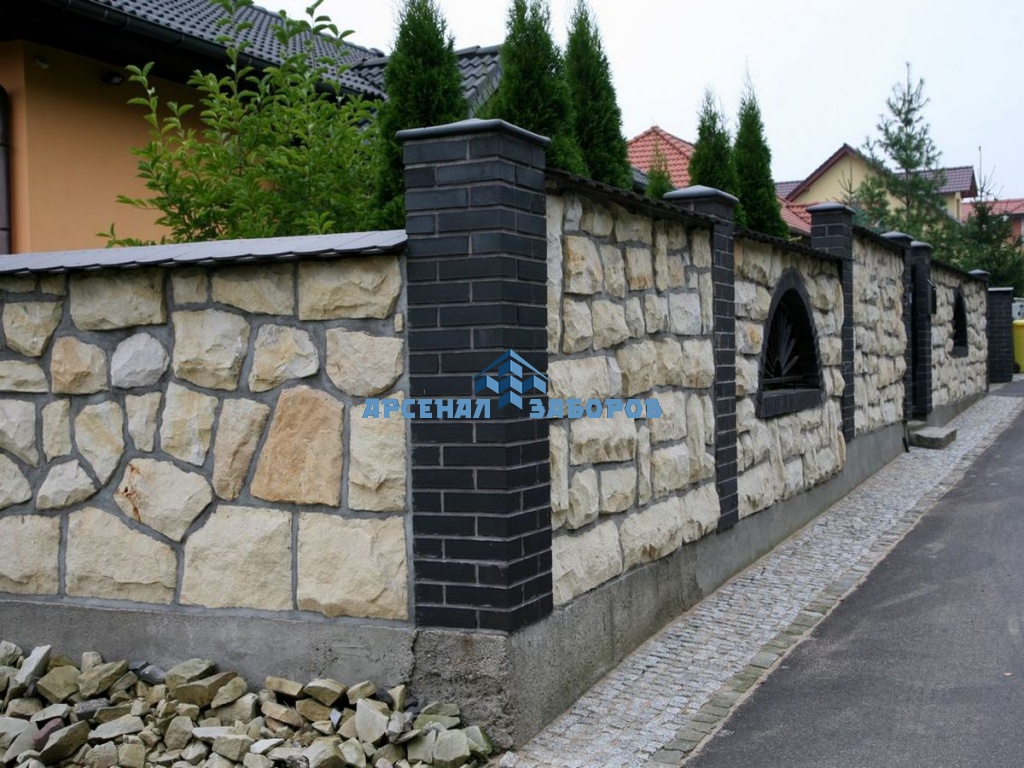 Кирпичный забор с камнем 25 метров