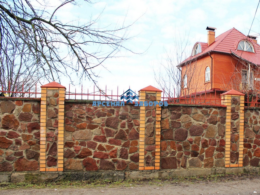 Кирпичный забор с камнем 50 метров